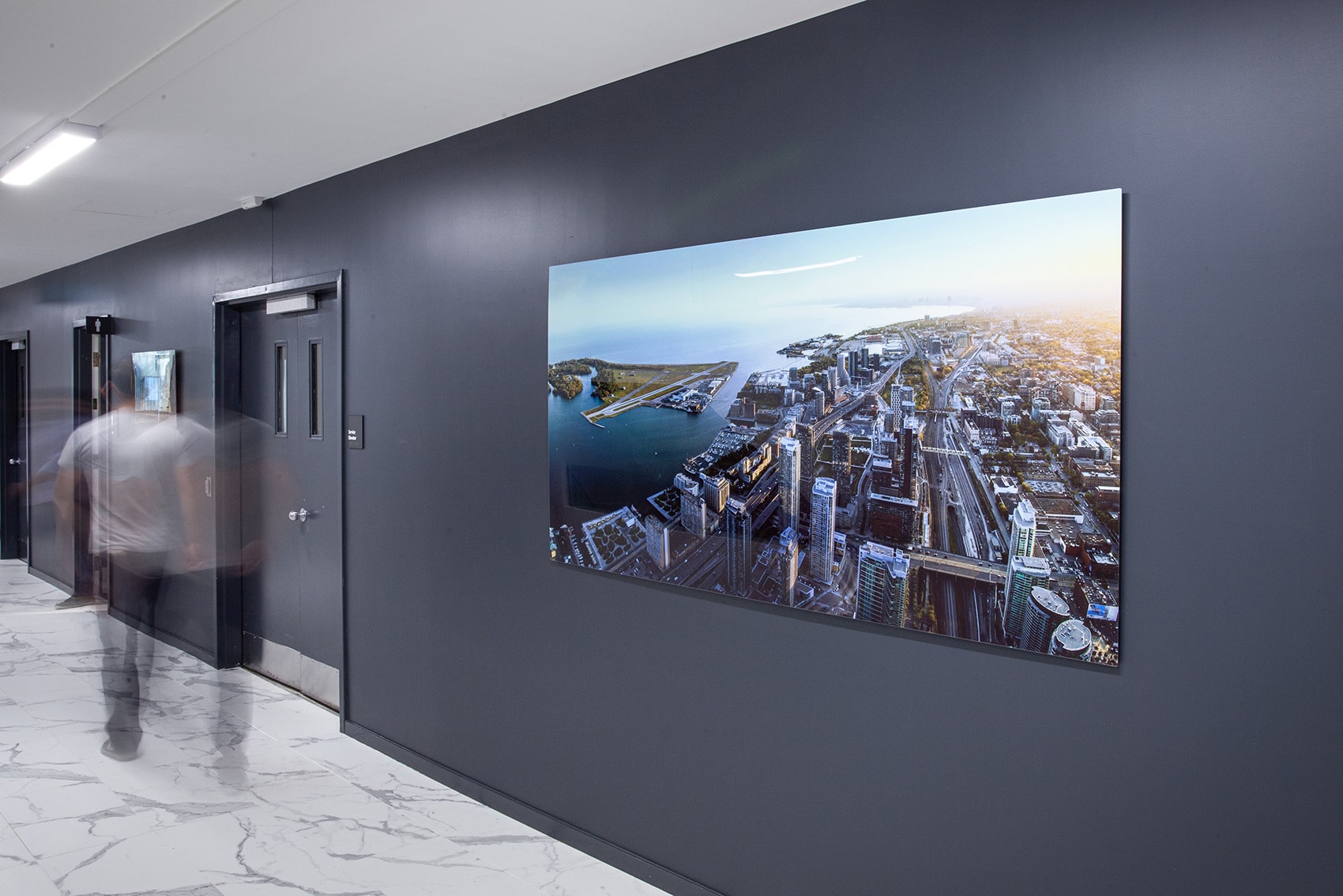 Located in a city recognized as one of the most multicultural and cosmopolitan in the world, the Toronto office of Aon provided Archigrafika an opportunity to rebrand by extending the graphics system introduced in New York. From antique maps to stunning skylines, a dynamic new signage and wall graphics program juxtaposes imagery of Canadian lakes, provinces and national parks with Toronto’s eclectic combination of architectural styles and diverse neighborhoods.