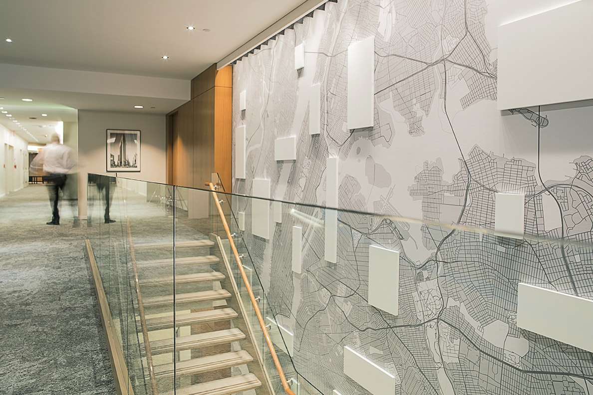 For Willis Towers Watson’s New York office at 200 Liberty Street, Archigrafika focused on capturing the essence of the city. Each conference room is named for a different neighborhood, while the art and wall graphics feature such iconic structures as the Chrysler and Flatiron Buildings, with scenes of city life both historic and modern. Enriched by artwork ranging from vintage airline posters and antique subway signs to contemporary photography by the Archigrafika team and architecture-inspired glass patterns, the office epitomizes the eye-catching vibrancy of working in New York.