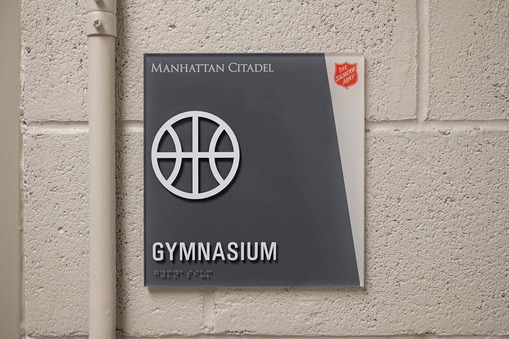 The Salvation Army is an international charitable organization that first came to New York in 1880. They chose Archigrafika to design and produce the signage for their new building in Harlem. The design requirements were actually twofold; the building is divided into Manhattan Citadel corps, which houses community facilities such as the chapel and gymnasium, and EastView Residence, a set of apartments and amenities. Archigrafika developed an overall system of pictograms, room signage and wayfinding for the building, as well as separate logos and treatments for Manhattan Citadel and Eastview Residence, which were used in everything from large exterior building logos to printed applications on small signs.