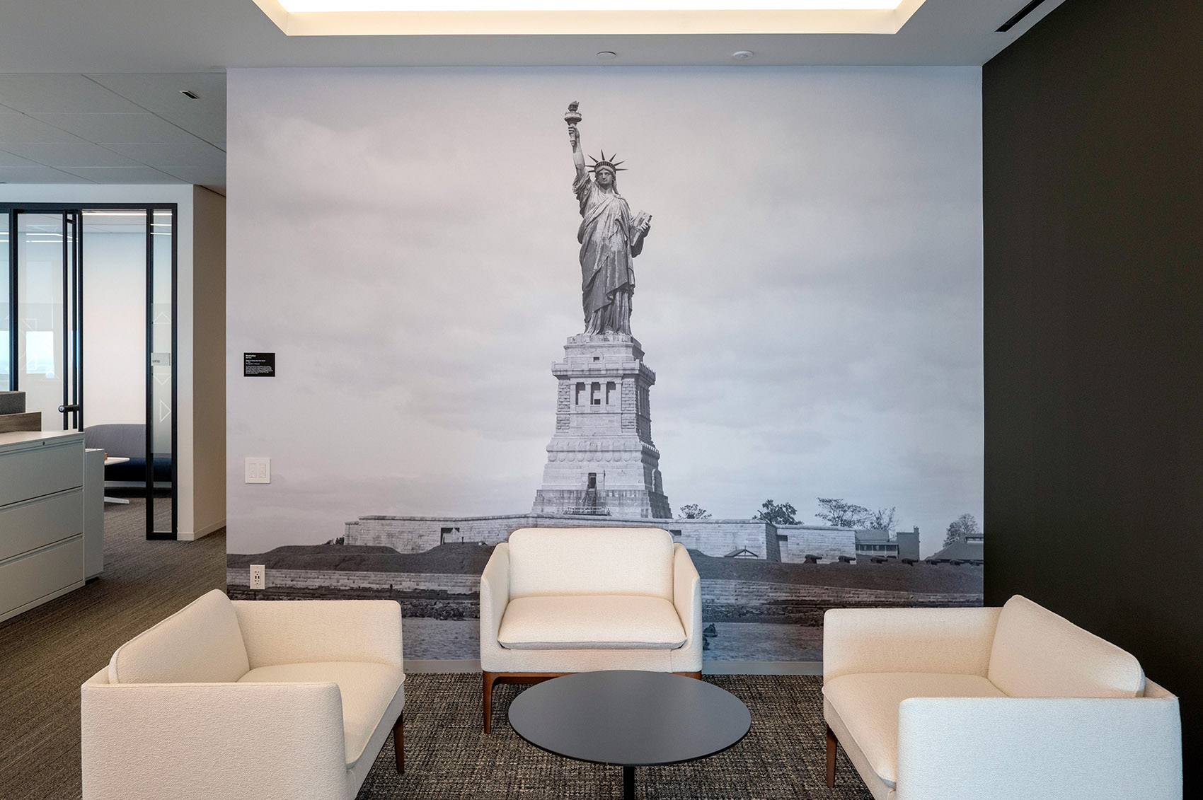 Other pieces around the office pay a similar homage to New York City itself, past and present. The open collaboration areas honor the different boroughs of New York with larger-than-life historical photographs, while other corridors show the iconic buildings that represent the city today. The company’s values are also placed front and center throughout, a constant reminder of Westfield’s commitment to their clients and colleagues.